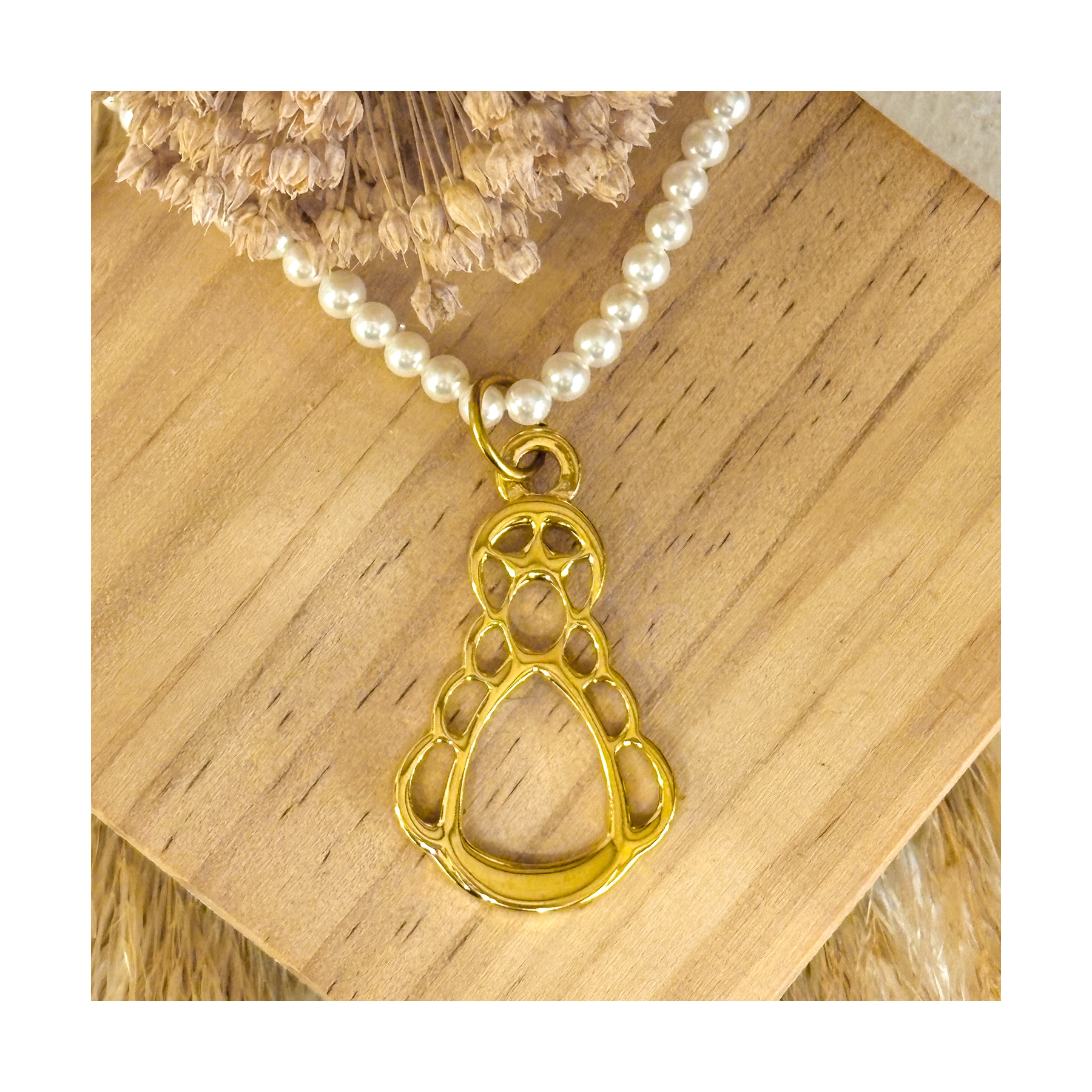 Gargantilla perlas&acero y silueta 4,5cm VIRGEN DEL rOCÍO