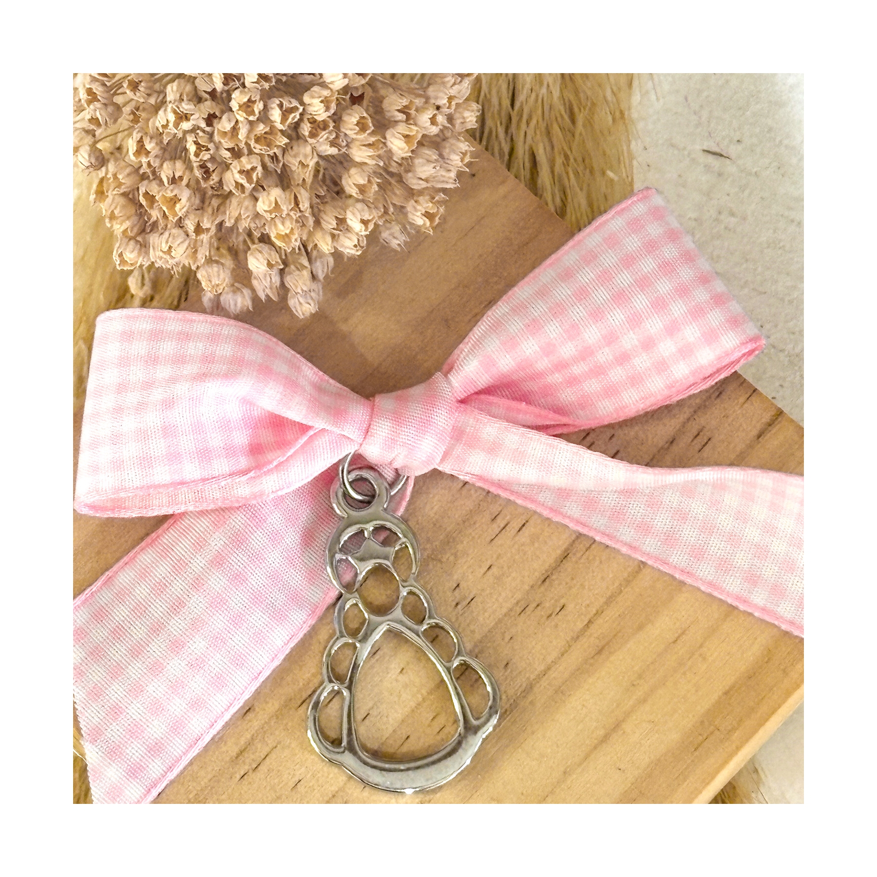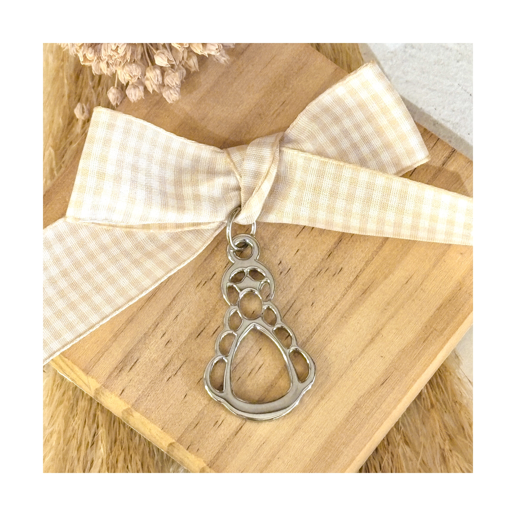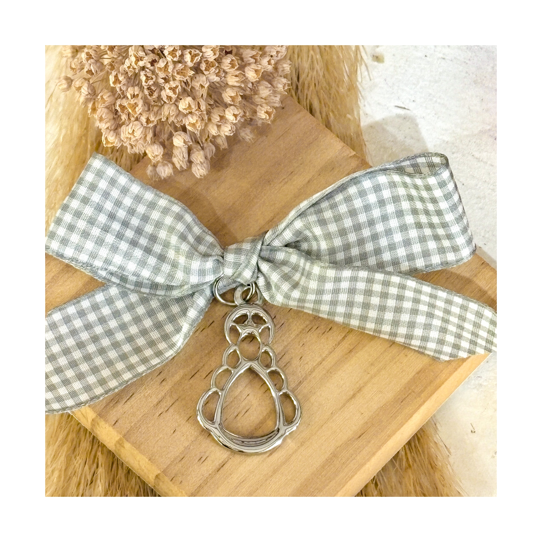 Medalla cuna silueta acero 4cm y lazo cuadros