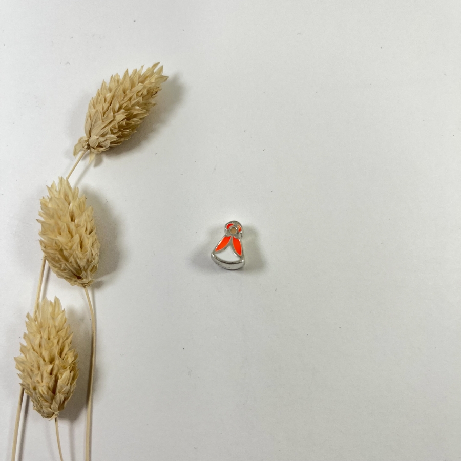 Charm pastora esmaltada naranja flúor plata