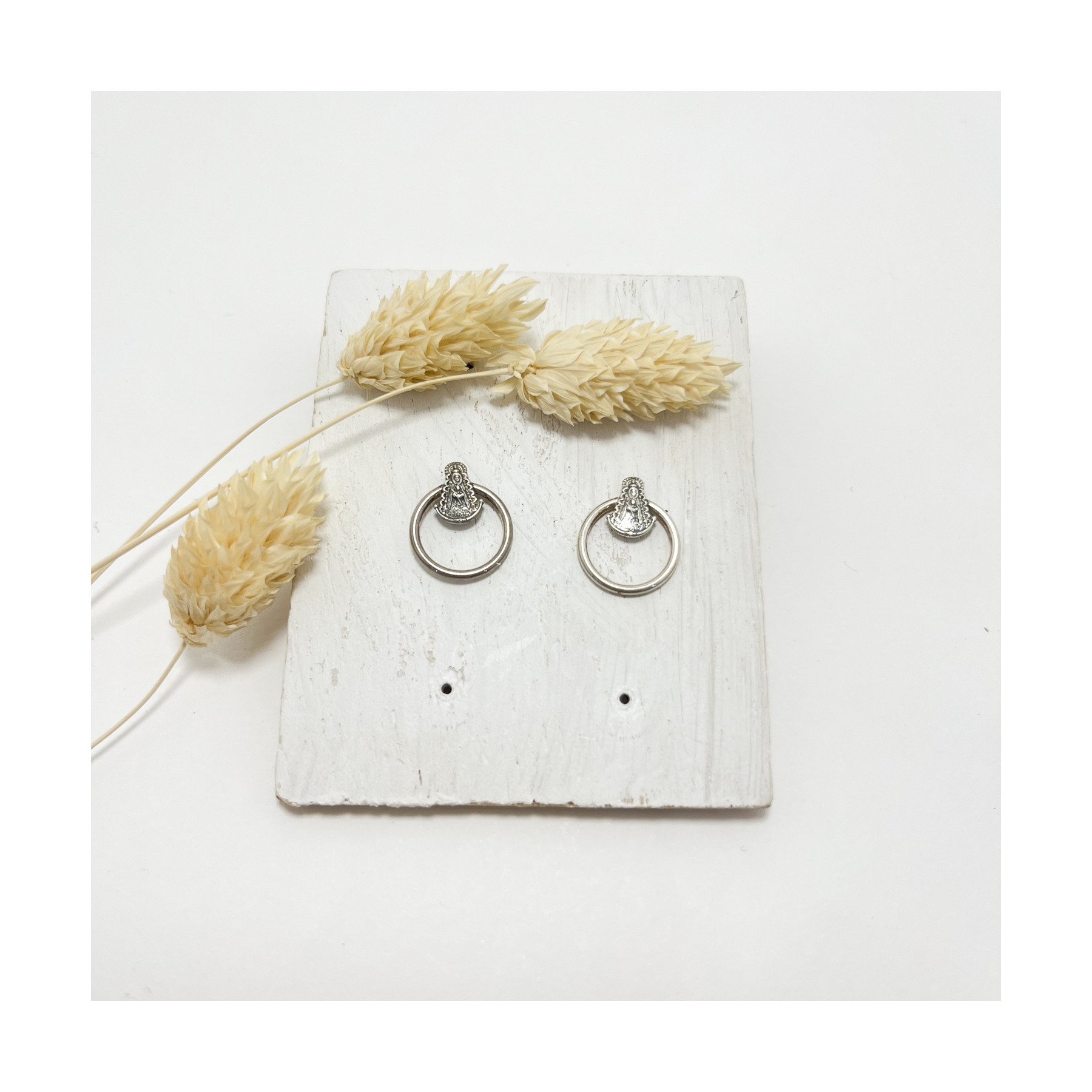 Pendiente de plata de ley con aro y Virgen del Rocío labrada de reina.